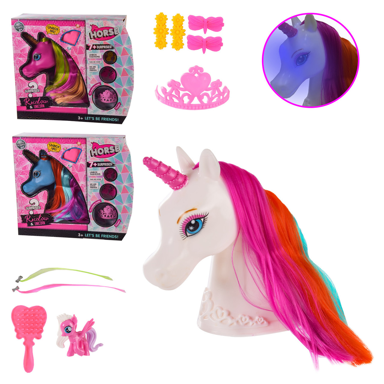 Ігровий набір Голова для зачісок LK1076 конячка зі світлом звуком та сюрпризами