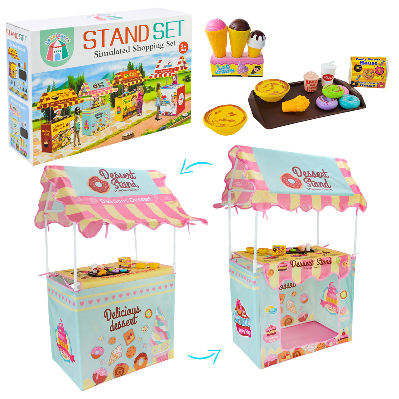 Чудовий варіант для рольових ігор, який дозволить дитині відчути себе продавцем у власному торговому наметі. Завдяки стильному дизайну та великій кількості аксесуарів, гра стає ще цікавішою та реалістичнішою.